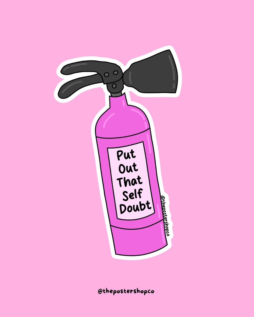 Put Out That Self Doubt Fire Extinguisher Illustrated Printable Sticker 9"×9" - The Poster Shop Co